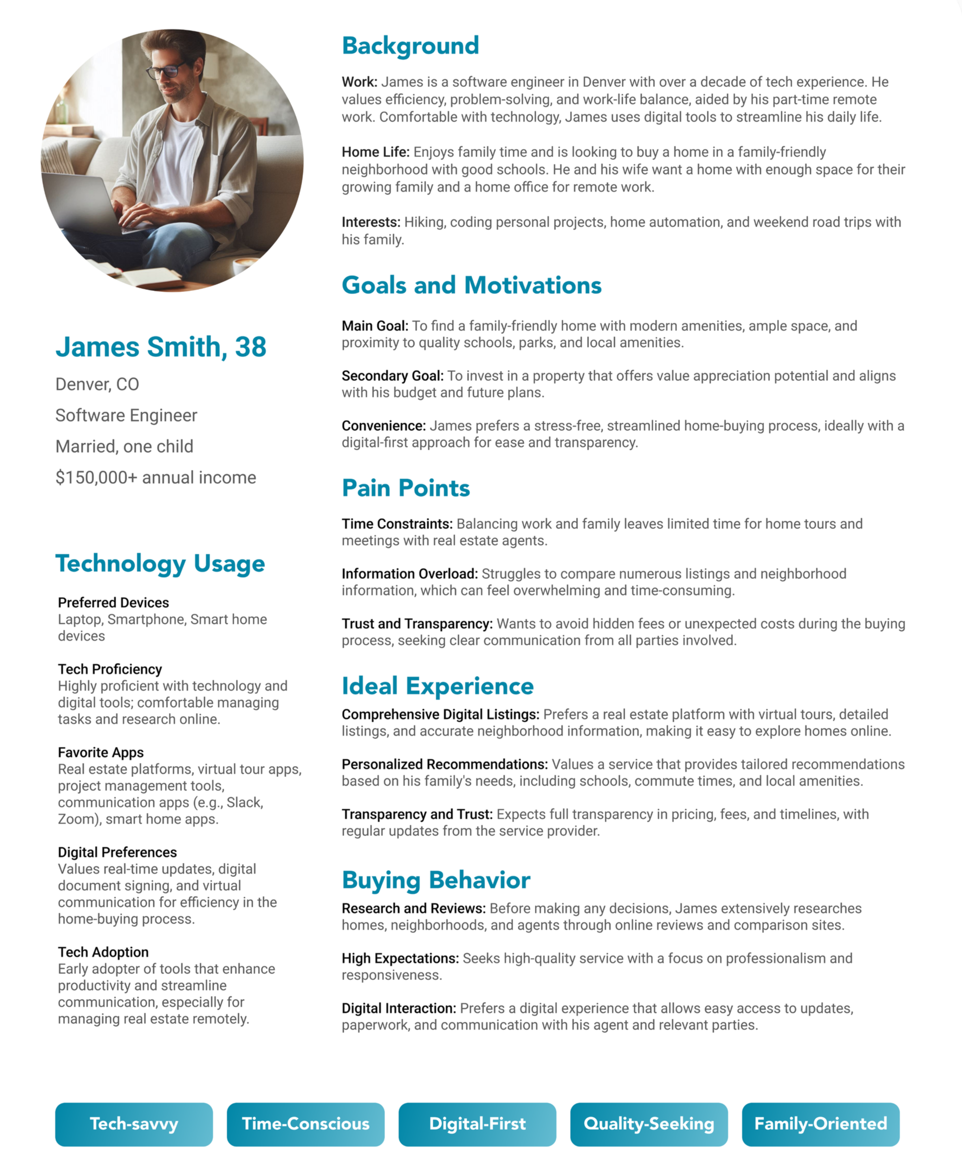 Creating a persona is helpful to reference when thinking about which type of user we’re likely to be dealing with. Considering things like: