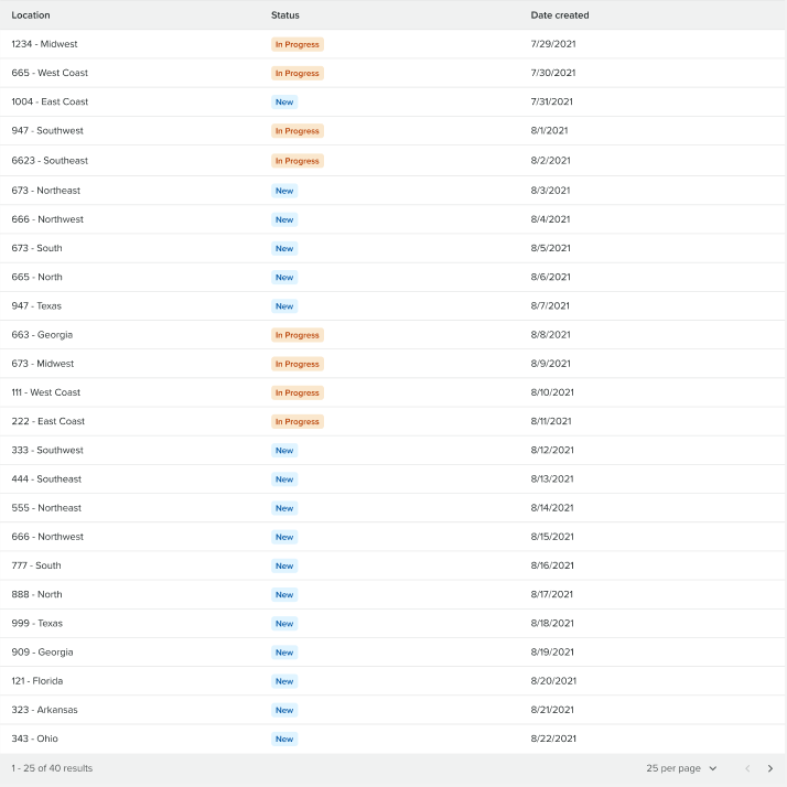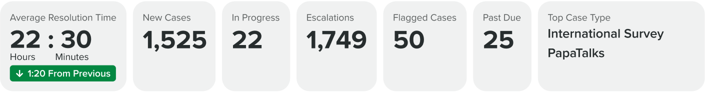 These top metrics are shown along the top of the page below the navigation and are essentially small cards that aren’t interactive. Their purpose are to show key information based on the data within the table. These metrics are configured by admin users during initial setup process.